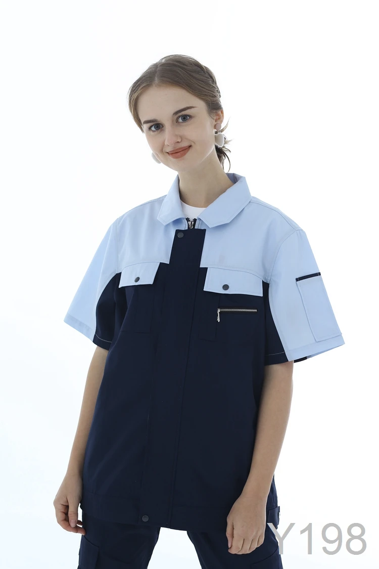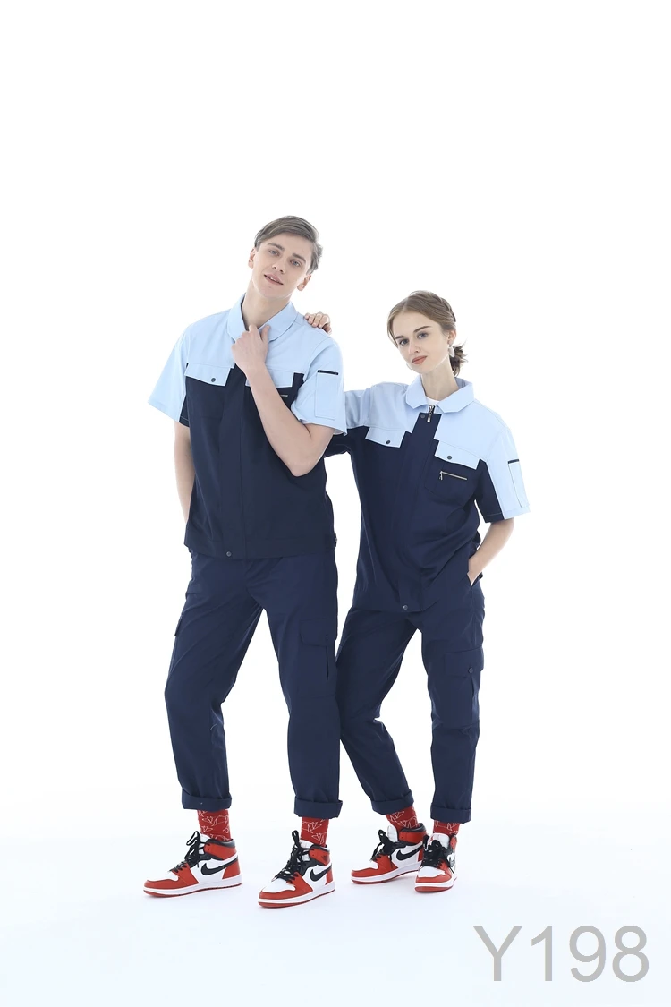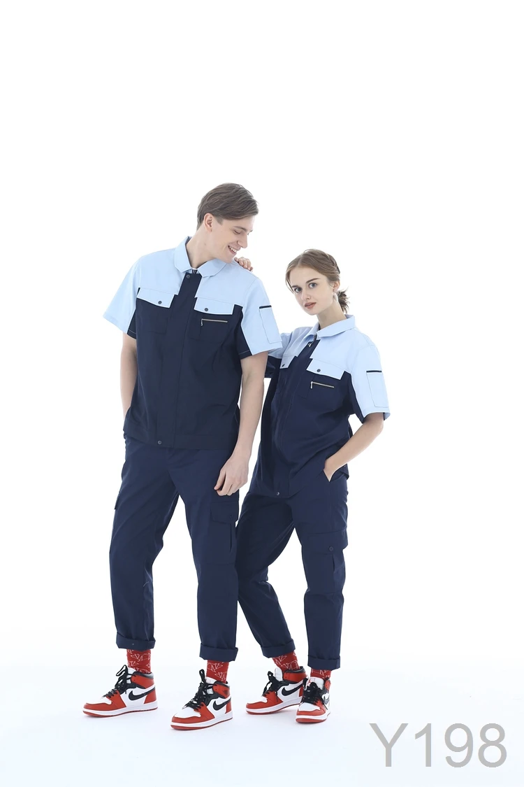 100% Cotton Flame-Retardant Breathable Anti-Static Short Sleeve Contrast Color Work Shirt and Pant Summer Uniform Set